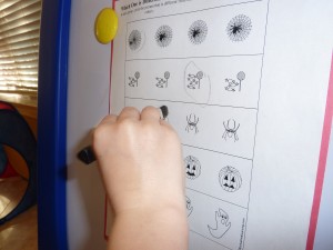 Personal Note: Â I was in a bit of denial about Andrew’s fine motor skill weakness, since he could spin a dime with no problem, and just thought he was just a child who wasn’t too interested in drawing or writing. Â It wasn’t until he became school-age and he wasn’t even close to being able to write letters or numbers that we could see it was a weakness in several issues like planning and applying pressure. Â I thought about the motor planning involved in doing something like handwriting that I realized he needed help practicing at home as well with an Occupational Therapist. Â Looking back, this all makes sense considering he has issues in another developmental area that requires lots of planning and very particular fine motor skills- speech!
