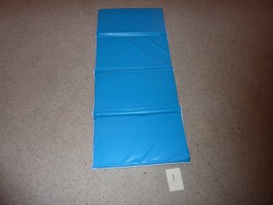 I got the idea to include this regular nap mat after a gymnastics session. I realized that while he certainly didn’t use it for napping purposes, it would be a fabulous My Obstacle Course station. It could be used as a place to work on hot dog rolls, forward or backward rolls. I have also put it against a wall so he could do a supported head stand, handstand or wheel-barrow walk up (walking feet up the wall while hands are on the mat and arms are straight).  If you don’t have one of these, get creative- think folded blankets, patio furniture cushions.