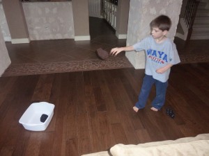I encourage you to be creative, go out to the garage or climb deep into the depths of the closets throughout your house and you just might be surprised at what you find that could be incorporated into a fun My Obstacle Course for your child.  I found collapsible tunnels (which I’ve posted about), an unused nap mat, a bean bag toss game, balls that weren’t played with and even had an idea while climbing the stairs during my hunt!