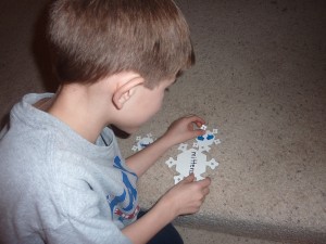 • “Climb and Sort” or “Climb and Match”-The stairs are great for matching or sorting activities because you can place the items or cards to be sorted at the bottom and the containers to be sorted into can be at the top. Since he can only take one item or card up at a time, this has been a good energy buster for us!
