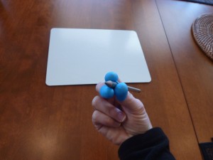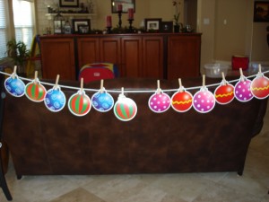 I had been wanting to work on patterns with my son and found a package with large ornament pieces, with 6 of a kind (you could also make your own with construction paper or wrapping paper, they would just be a little more flimsy). These could be used on the floor to make patterns but they were also sturdy enough to be used in the same way but on the clothesline.  Combining two skills, one that he struggled with (fine motor planning) and one that he enjoyed doing (patterns) has been key in getting his to work on more challenging things.