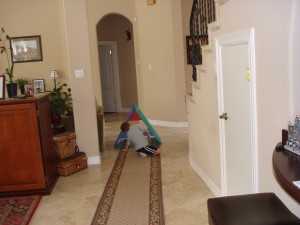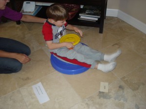 I decided to use it in My Obstacle Course with Andrew and got to see firsthand how challenging this is for little fingers and all that goes into taking an item and clipping it onto the line. Â Adults make it look so easy! Â So many things have to be done at the same time, in the right place so that the item actually stays where it belongs. Â For someone with motor planning and fine motor issues, this was going to be a perfect opportunity to practice.