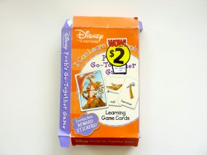This was a concept I wasn’t sure if Andrew was grasping when we first began doing My Obstacle Courses with him. Â I knew this would fit in perfectly as a station activity and had lots of ideas for how to do so. Â While I try to use real objects when I can to help reinforce and build concepts and skills with Andrew, there are some times when it’s not practical or possible and when that happens I love using things that are easy to set up and are also fun and kid-friendly. Â I found some Winnie the Pooh Go Together cards at Walgreens (this was years ago and I’m not sure if they still sell them at Walgreens so I’ve attached an Amazon link: for Pooh’s Go Together Game click here ).