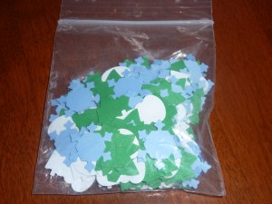 I choose how many of each specific cutout I want to have in the graph and place them in a container (small plates, cups or cupcake foils work great for this!).