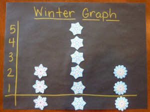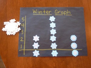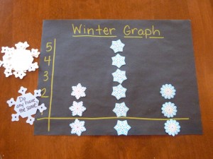 The level of difficulty can be adjusted and if you have a child who is ready for more representational thinking, you could have each cutout represent a given amount (ex. one snowflake cutout=10 snowflakes falling), even cutting snowflakes in half to make it more challenging!