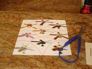 If you have a child who is not crazy about working on scissors skills, think about what they like or what they are into and have them cut out things that go along with their interests, like Andrew cutting out fans. Â Think about using things like toy catalogs, grocery fliers, old magazines, wrapping paper, string, etc. and add some purpose by having them find specific things or amounts of things.