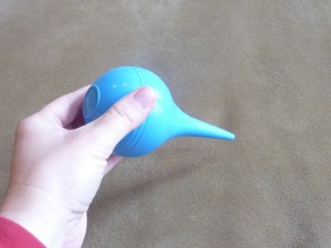 I know I say this all of the time but I really do love that there are so many wonderful and unexpected items sitting right in my cupboards that allow me to help Andrew build skills! I found this bulb syringe, aka the booger bulb, while cleaning out our medicine cabinet and figured since it hadn’t been used in years, it was time to get rid of it.