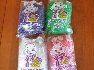 I purchased them not for our Easter baskets but rather to use in My Obstacle Course along with tweezers or tongs for fine motor skill building. While Andrew’s handwriting is really improving, we still need to build his pencil grasping muscles and tweezers are a great tool to use for this. Since Easter is just around the corner and I like to use things that are thematic and seasonal, I bought some jelly beans to put in the grass for him to get out.