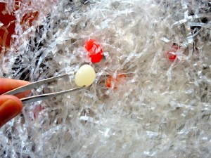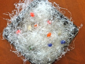 Your child will use the tweezers to grab the jelly beans out of the grass. You could work on color recognition by having your child hunt for a certain color or choose a certain number you’d like them to find, especially if this is challenging for them.