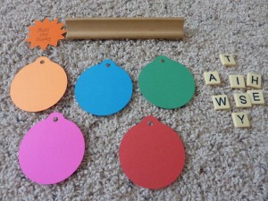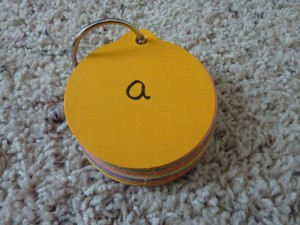 I had picked up this colorful pack of round cards that are perfect for creating flash cards (You could also use index cards or any note paper that you have at home, I would just recommend that it is thick enough so you are not be able to see the word from the other side.). This particular set comes with one of those binder rings to keep them organized and make it easy to flip through them.