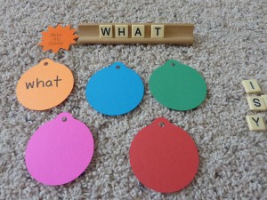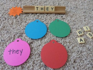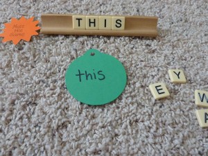 This is such a simple game but gets the child actively involved in putting the letters together to form the word. This can help children who are having difficulties with sight words and utilizes all modalities of learning – visual (seeing the word), auditory (hearing the word said out loud) and kinesthetic (putting the letters together to form the word).