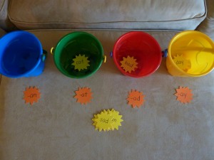 I found these colorful pails at Michael’s and while they are meant for playing in the water and sand, they are also perfect for a sorting station. So colorful and they stack nicely for storage purposes.