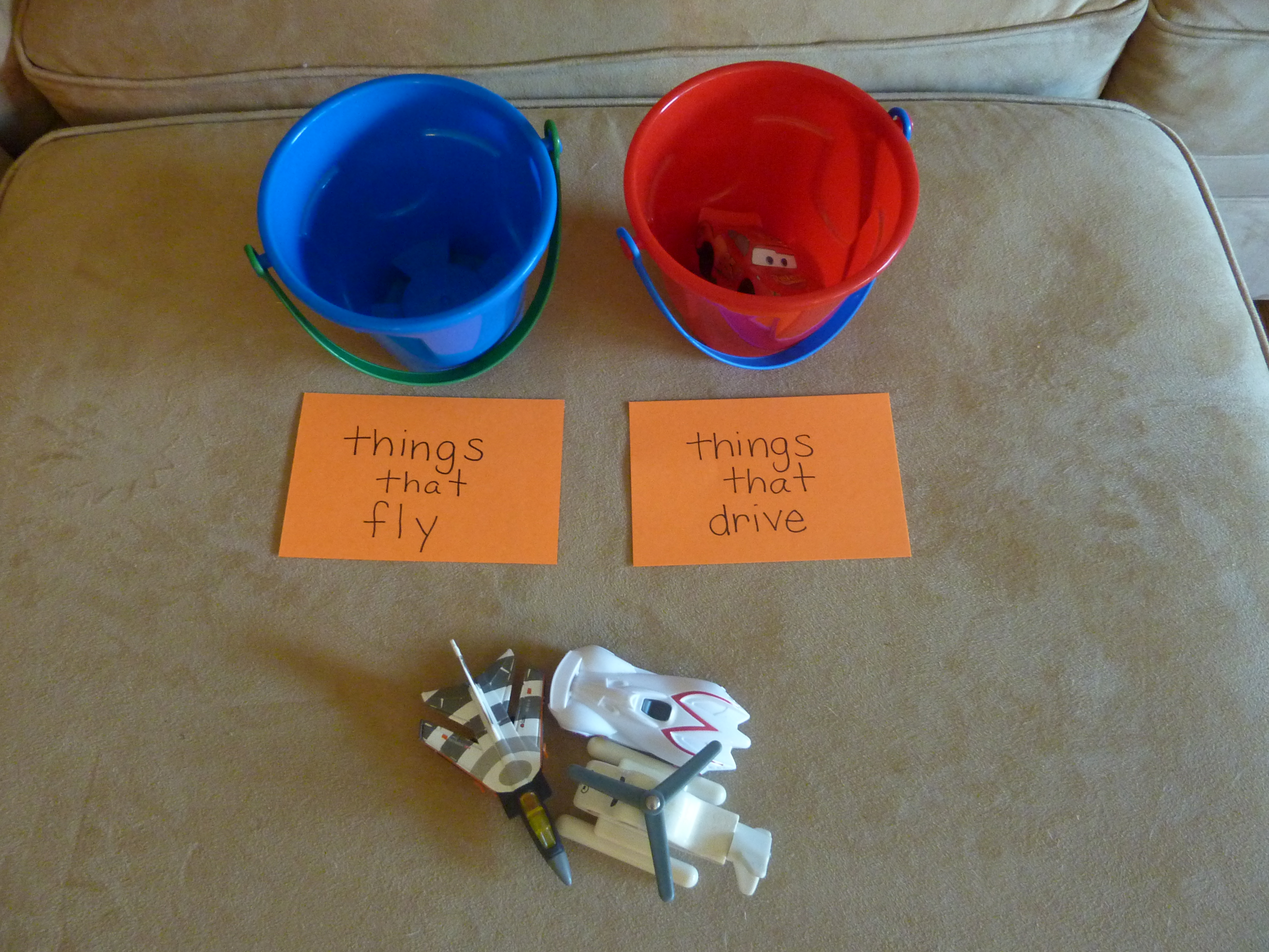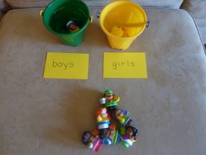 Besides an obvious sorting station of sorting by items by color, here are some other sorting ideas: