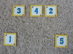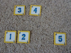 If they can count to five, can they match their counting with the number? I know that for a while, Andrew would count out loud but the numbers he was pointing to didn’t always match up. I would have him slow down but also ask him to point to certain numbers so I could tell if he really knew what they were.