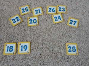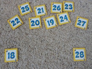 My Obstacle Course Station Activity: Put the numbers in order from 18-28.Putting the numbers in order.Numbers in order from 18-28.