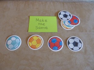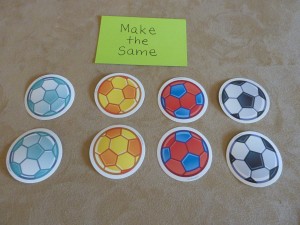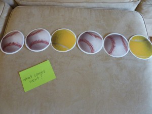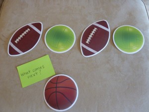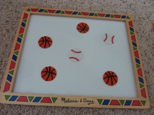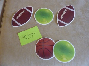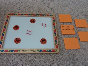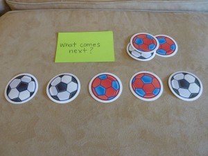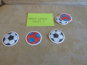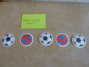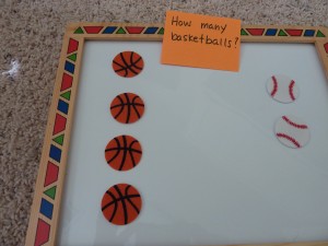 I have some hourglass timers that I found at the teacher store -Â one is for 3 min. and the other is for 1 min. These work well when doing an activity that I know he can do but is “stimming” on something (or giggling uncontrollably which frequently happens 🙂 ). If it is an activity that is very challenging for him, then I will say, “Just try your best and let’s see how many we can do before the sand goes down!”