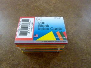 Step 2: Get something sturdy to place the stickers on. I like to use index cards and found these small, blank, colored cards at my teacher store. I choose one color to use per memory match game and try to choose a color that goes with the theme or season we are in. For this one, I chose to use the red ones.