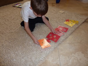 Note: This is just me, but I wanted to make the papers look a little more appealing so I trimmed them and glued them onto black construction paper before “laminating” them with clear contact paper. I did this so I could reuse them in future My Obstacle Courses as well as share them with Andrew’s teacher to use in his classroom. The construction paper and contact paper make them a bit more sturdy.