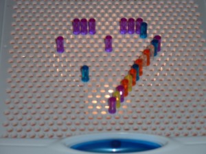 Choose colors or a pattern. Begin the row or the pattern and have your child finish the pattern by screwing in the pieces that come next. I like to provide the exact number of pieces that he will need to complete it. Once I saw that he had a good idea of the pattern, I would include an oddball screw to see if he could recognize that it did not belong.