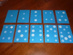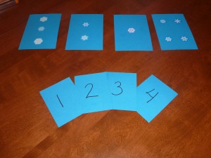 I used one of my rimmed cookie trays (I have to use them for something since I don’t bake!!), some ramekins (If you worry about breaking the ramekins, you could also use small Dixie or plastic cups or bowls.) and added a few drops of red, yellow and blue food coloring in: red, yellow and blue food coloring. I did this part with Andrew so he could also work on stirring but you could do this for them or ahead of time.  It is kind of cool for them to see the water take on the color of the food coloring drops.